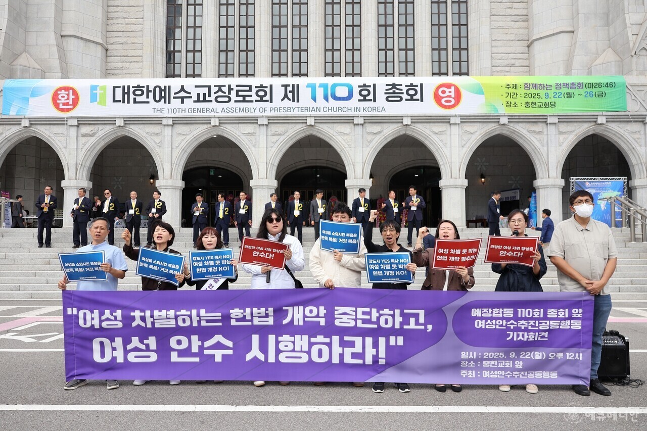 ¼¿ï °³²±¸¿¡ À§Ä¡ÇÑ ÃæÇö±³È¸¼ ¿¸° ¿¹ÀåÇÕµ¿ ÃÑȸ(ÃÑȸÀå À庴»ý¸ñ»ç)´Â ¿©¼º¿¡ ´ëÇÏ¿© ¾È¼öû¿ø ³íÀÇ´Â Ä¿³ç Çå¹ý¿¡ ¿µ¿øÈ÷ ¿©¼ºÀº ¾È¼ö¹ÞÀ» ¼ö ¾øµµ·Ï °³Á¤Çß´Ù. ¿¹ÀåÇÕµ¿ ÃÑȸ´Â Á¦109ȸ ÃÑȸ¿¡¼ °áÀÇÇÑ ¿©¼º°µµ»ç Çã¶ôÀº ¾ÕÀ¸·Î Àü±¹ ³ëȸ°¡ ¼öÀÇÇϵµ·Ï °áÀÇÇß´Â µ¥ ¿ä°ÇÀº Àü±¹ ³ëȸ 3ºÐ 2°¡ Çã¶ôÀ» ÇÑ ÈÄ ´Ù½Ã Â÷±â ÃÑȸ¼ ¼±Æ÷µÇ¾ß ½ÃÀ۵ȴÙ.