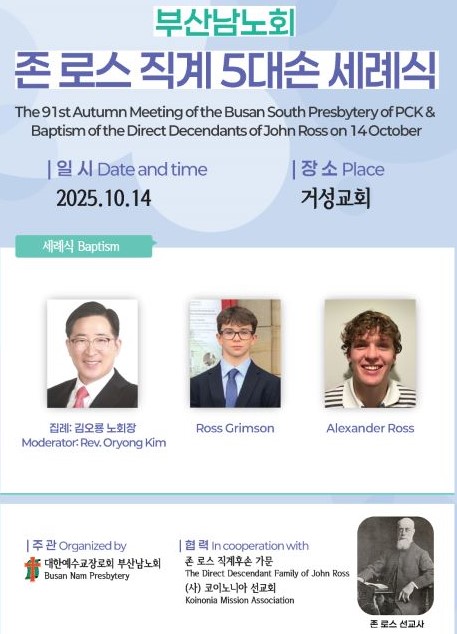 ±×·ÎºÎÅÍ 278³âÀÌ È帥 2025³â 4¿ù Àå·Î±³ÀÇ ¹ß»óÁö ½ºÄÚÆ²·£µå ¿¡µò¹ö·¯¿¡ ÀÖ´Â Á¸·Î½º ¼±±³»ç ±â³ä±³È¸ÀÎ ´ºÆ°±³È¸°¡ ÇÑ ‹š ¹®À» ´Ý¾Ò´Ù°¡ ºÎ»ê³²³ëȸ µ¿·¡Áß¾Ó±³È¸¿Í ¹ÚÁؼö ¸ñ»ç¸¦ ÅëÇÏ¿© 4¿ù¿¡ ÀçÇå´ç½ÄÀ» °®°Ô µÈ´Ù. ¹ÚÁؼö¸ñ»ç´Â ºÎ»ê³²³ëȸ ¼Ò¼Ó ¼±±³»ç·Î ÀÌ ±³È¸ ´ãÀÓÀ¸·Î ¿µ±¹ ½ºÄÚÆ²·£µå±³È¸ ·Î½Ã¾È¾Øº¸´õ½º³ëȸ(³ëȸÀå ·Î³ª ¼Ò¿ìÅÍ ¸ñ»ç)¿Í ´ëÇÑ¿¹¼ö±³Àå·Îȸ(ÅëÇÕ) ºÎ»ê³²³ëȸ(³ëȸÀå ±è¿À·æ ¸ñ»ç)¿Í °øµ¿ Áý·Ê¸¦ ÇÏ°Ô µÈ´Ù.