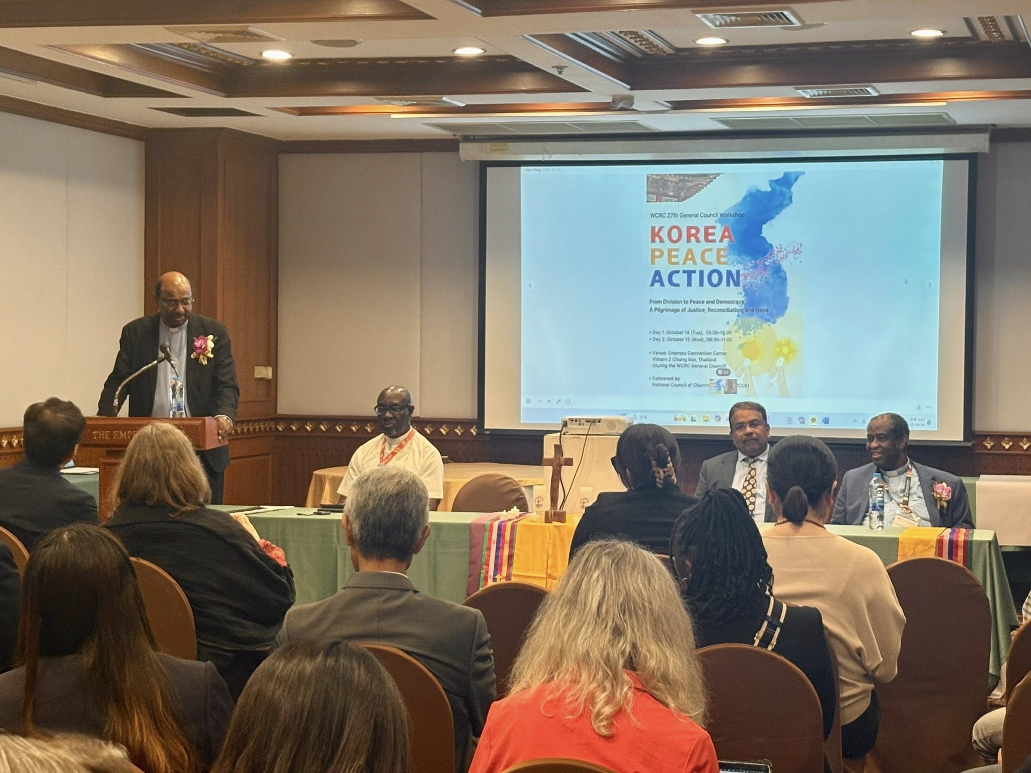 'Áõ¾ð¿¡ Èû¾²¶ó (Persevere in your witness)'¶ó´Â ÁÖÁ¦·Î Ä¡¾Ó¸¶ÀÌ¿¡¼ ¿¸° 2025³â WCRC Á¦27Â÷ ÃÑȸ°¡ ½ÃÀ۵Ǿú´Ù. ÃÑȸ ù³¯Àº Çѹݵµ ÆòÈ¿¡ ´ëÇÏ¿© ¸ðÀÓÀ» °®¾Ò´Ù. Àü ¼¼°è ¿¡Å¥¸Þ´ÏÄ® °¡Á·, ƯÈ÷ WCC Ãѹ«ÀÎ Á¦¸® ÇÊ·¹À̹ڻç¿Í ¸ÅÆ©½º Á¶Áö Ãß³ªÄ«¶ó(CCA) ¹Ú»ç, ¼¼Æ®¸® ³ª¿ä¹Ì(WCRC) »ç¹«ÃÑÀå°ú ÇѹݵµÀÇ ÆòÈ¿¡ ¿îµ¿¿¡ ´ëÇØ ¿¬´ëÇØ¿Â ºÏ¹Ì, À¯·´, ¾Æ½Ã¾ÆÀÇ À̵éÀÌ Âü¼®Çß´Ù.
