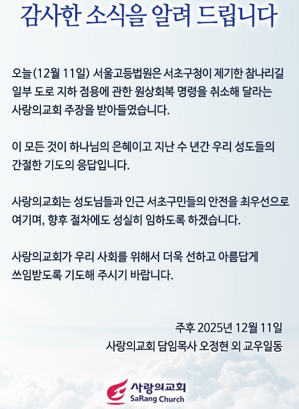 2025³â 12¿ù 11ÀÏ »ç¶ûÀDZ³È¸ ½ÅÃà °ü·Ã ÁÖ¹Î¼Ò¼Û ¿ø°í´Ü
